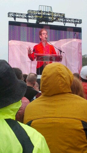 True kudos to the organizers of the Reason Rally for a really fabulous lineup, specifically the great representation of women here (not just speakers but discussion of misogyny and all of the important women's issues happening now...as they have been for an incredibly long time). Greta Christina (freethoughtblogs.com/gretachristina) is speaking now and is the first speaker to really gety us riled up talking about the important question, "why are atheists angry?" And it's because, "maybe we have legitimate things to be angry about." Yep.